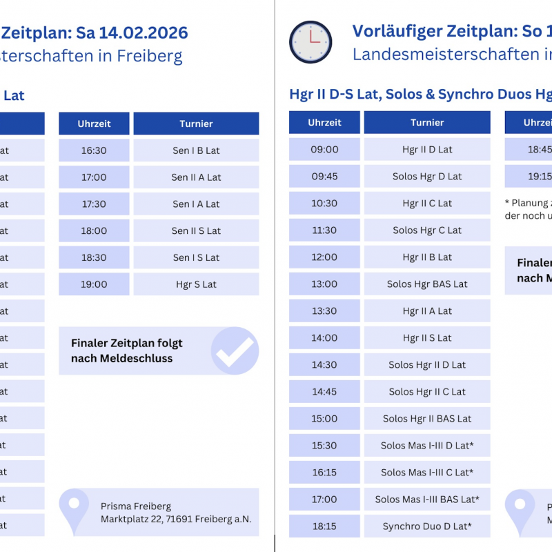 Weiterlesen … Landesmeisterschaften am 14. & 15.02.2026 im Prisma Freiberg