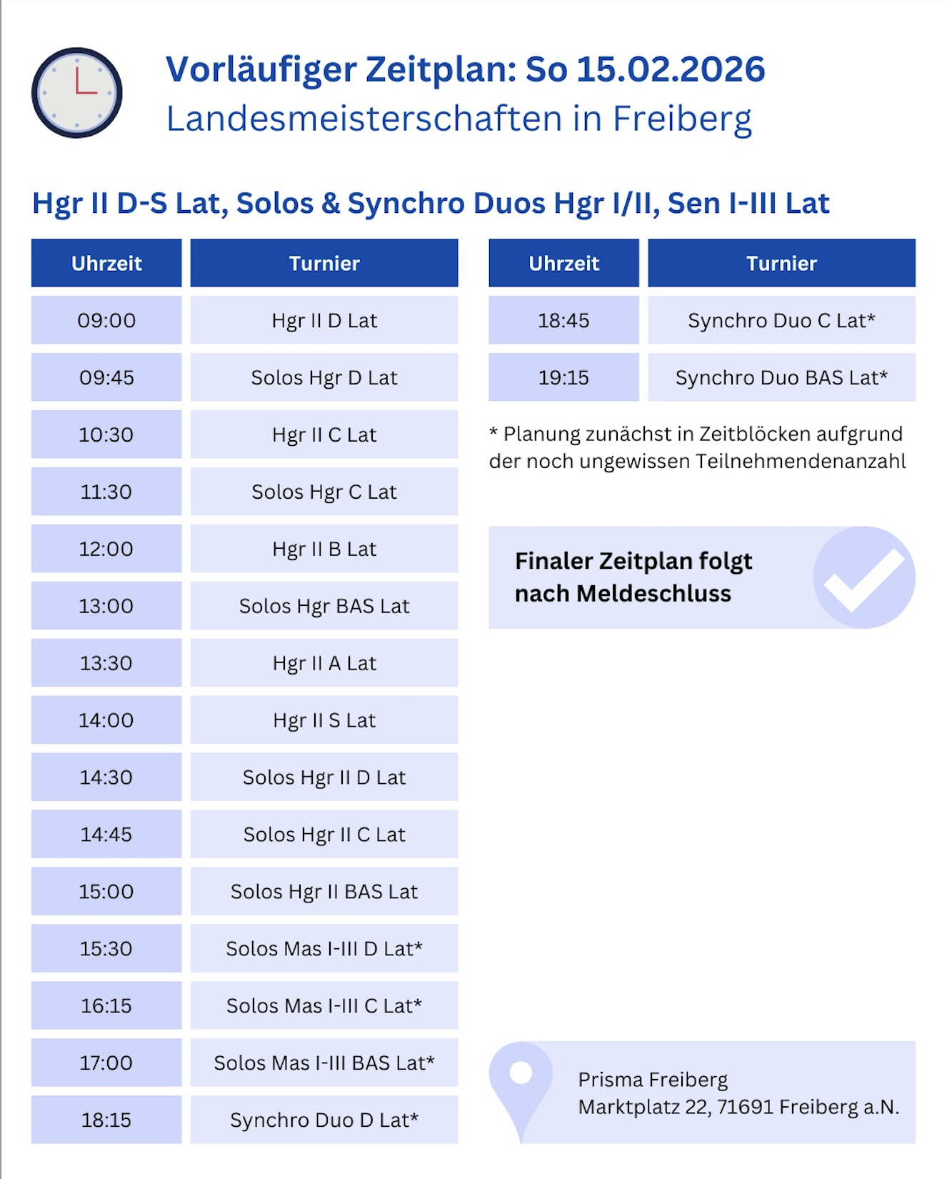 HGR II D-S Latein, Solo+Syncro Duo HGR+HGR II+Sen. I+II+III+IV D-S Latein am 15.02.2026 im Prisma Freiberg